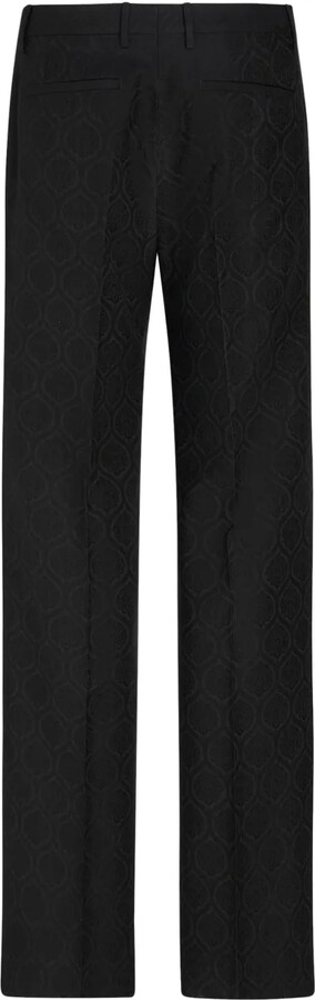 | Characteristics of goods | Details: black cotton-wool blend full jacquard all-over graphic print pressed crease belt loops concealed front zip fastening straight leg two side slit pockets two rear jetted pockets straight hem | ||