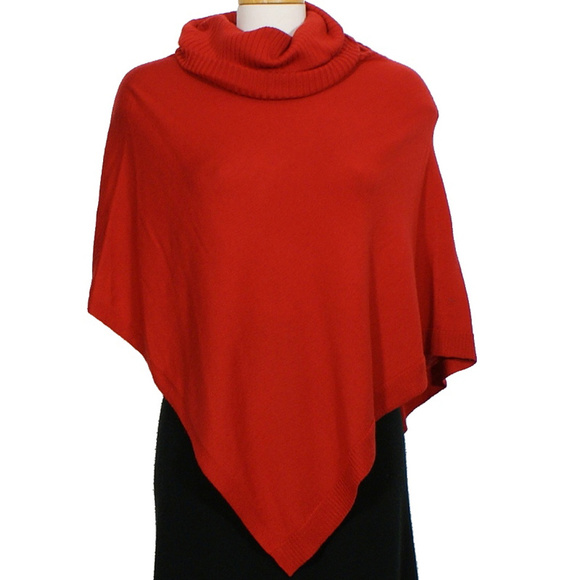 - Women > Sweaters > EILEEN FISHER Lacquer Red Merino Wool Jersey Turtle Neck Poncho Sweater Shrugs & Ponchos