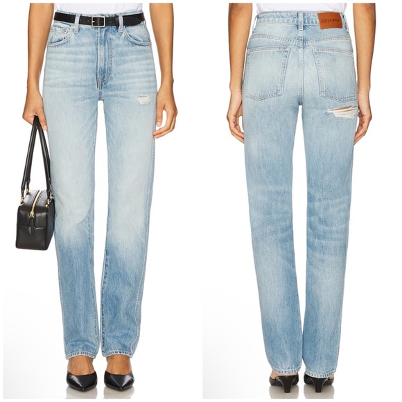 | Characteristics of goods | GRLFRND Sara Super High Rise Straight Jeans in La Brea Ave Size 27* 100% cotton* Machine wash cold* Zip fly and button closure* 5-pocket design* Contrast logo patch at back waistline* Open tear detail under back patch pocket* Midweight rigid denim fabric with intentional fading and distressing* Size 27New with defect: small rip at the back pocket P39 | ||