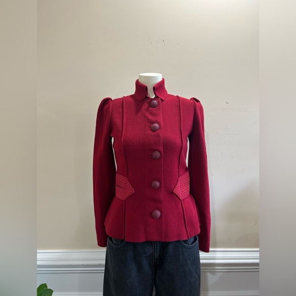 | Characteristics of goods | Material: 50% wool, 50% acrylic Measurements: shoulder to shoulder 13”, pit to pit 17”, sleeve length 23”, length 23”, Emporio Armani Sweater with collared and button closure front.Excellent condition. | ||
